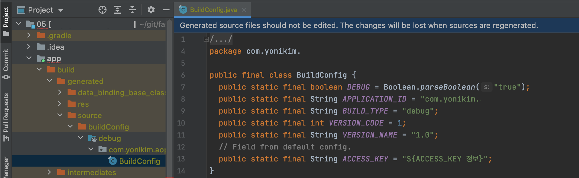 BuildConfig 파일에 해당 환경변수가 추가된 것을 확인할 수 있다.