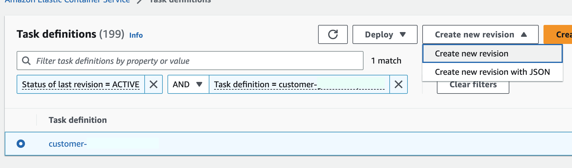 AWS > ECS > Task Definitions > [새 개정 생성] 버튼을 클릭한다.