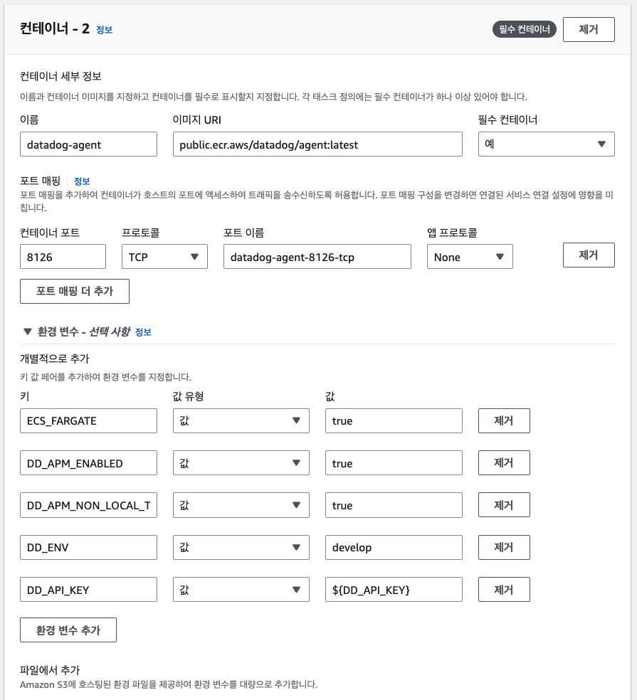 ECS Fargate 와 Datadog 를 적용하기 위해서는 Datadog Agent, Datadog Access Key, Docker Application 이 필요하다.