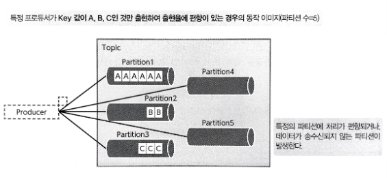- 메시지는 Key 와 Value 로 이뤄져 있는데, Key 를 이용하여 송신처 파티션을 결정한다.