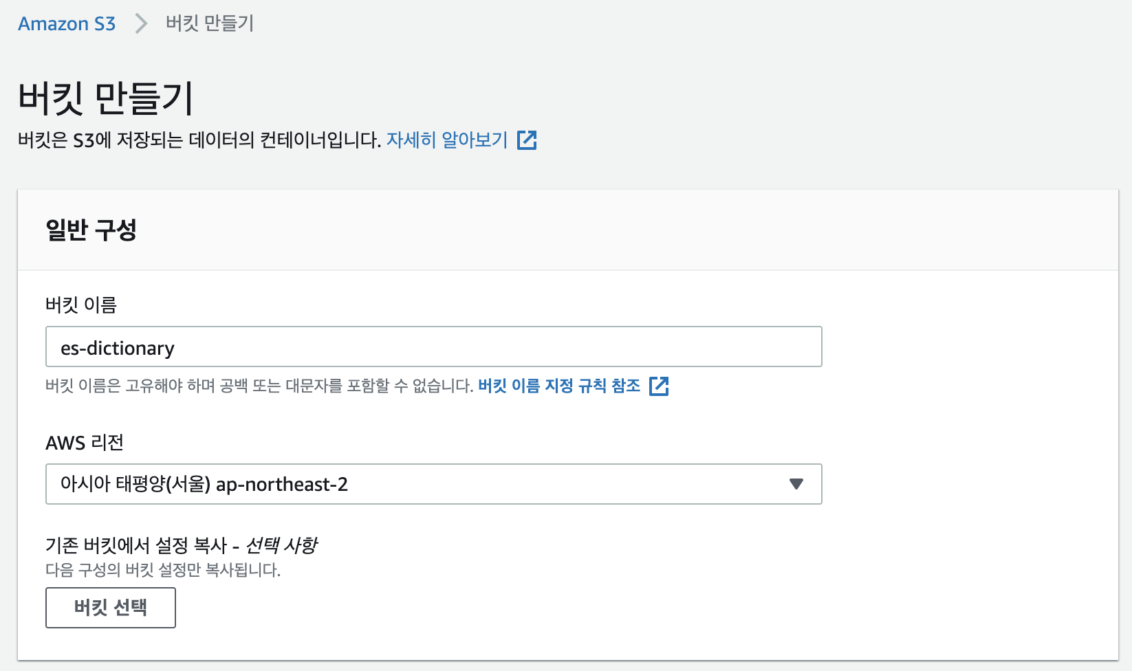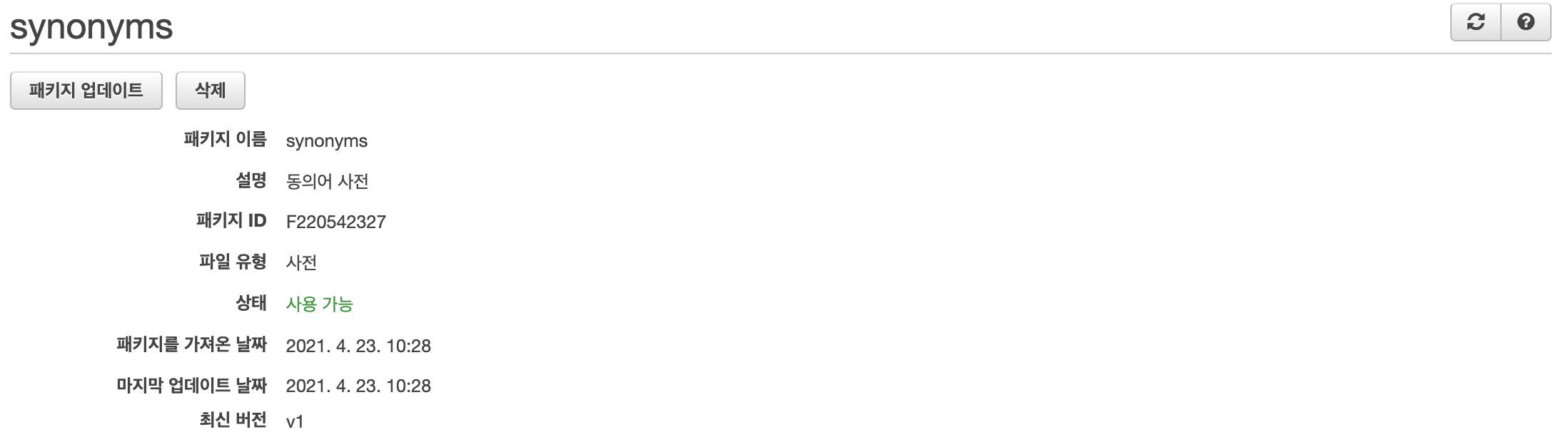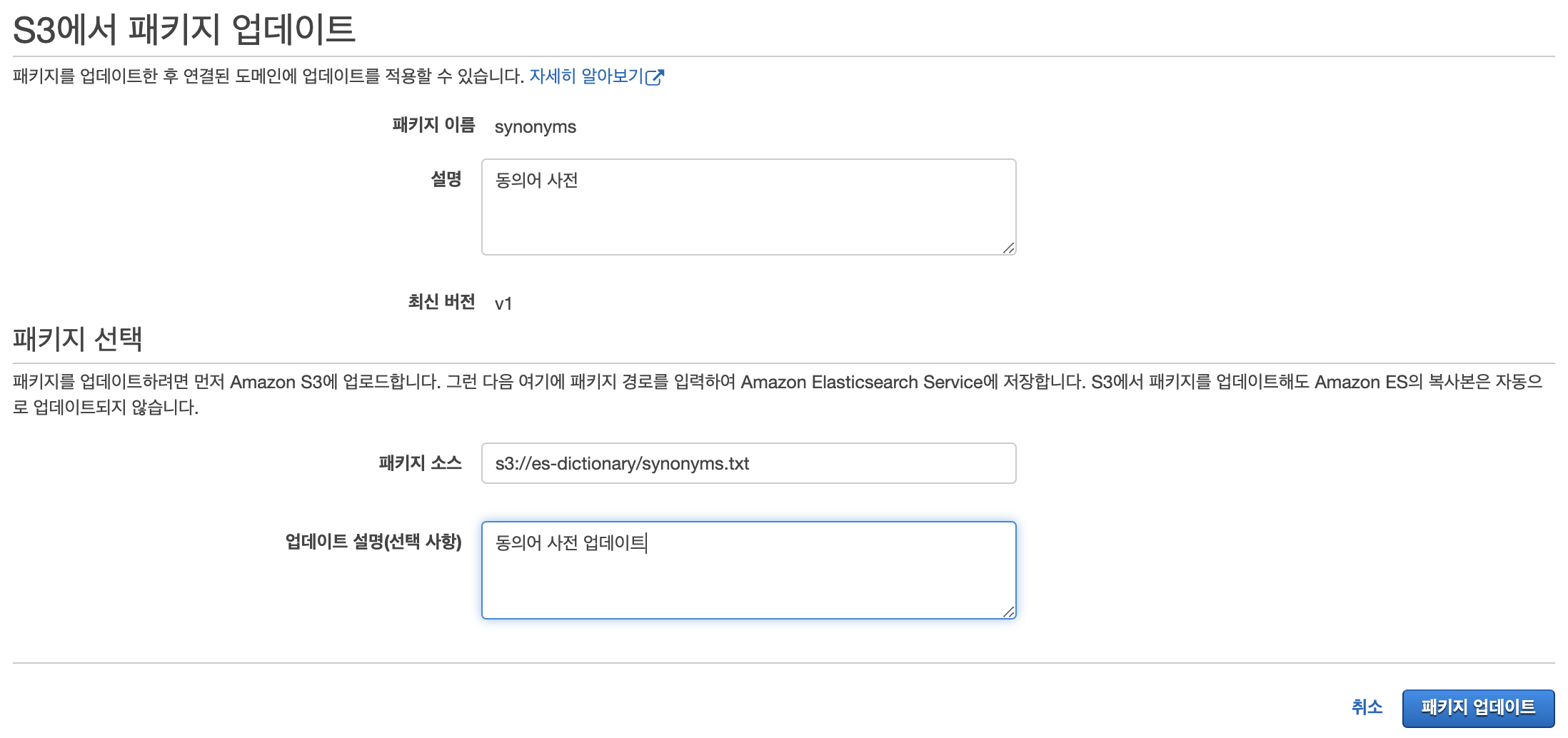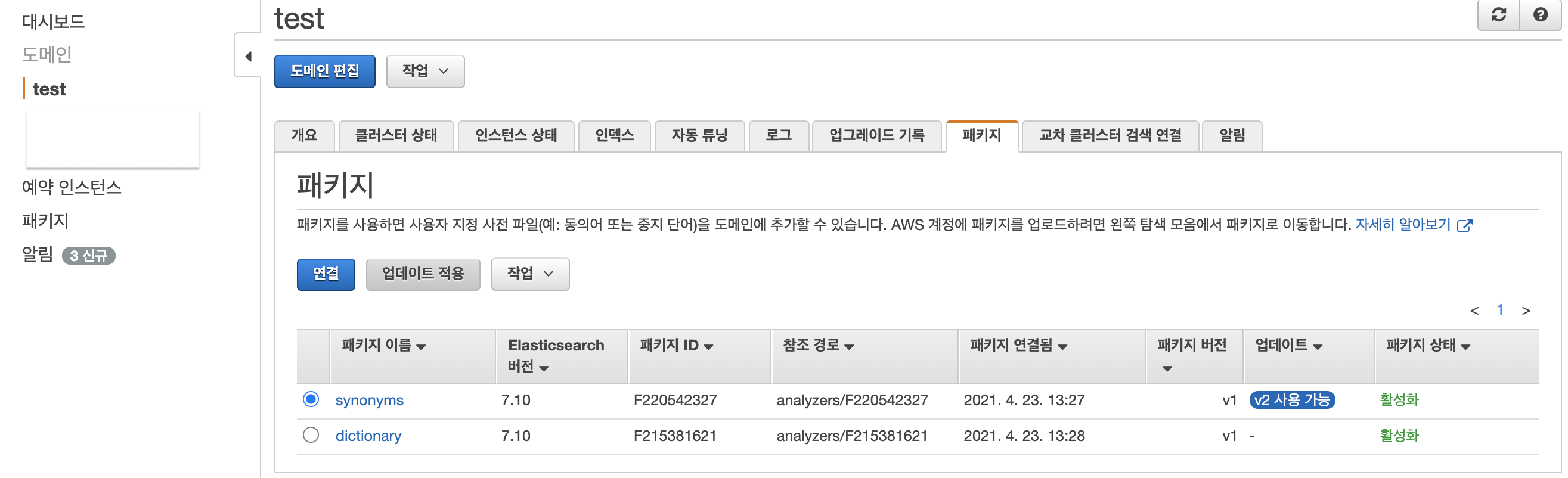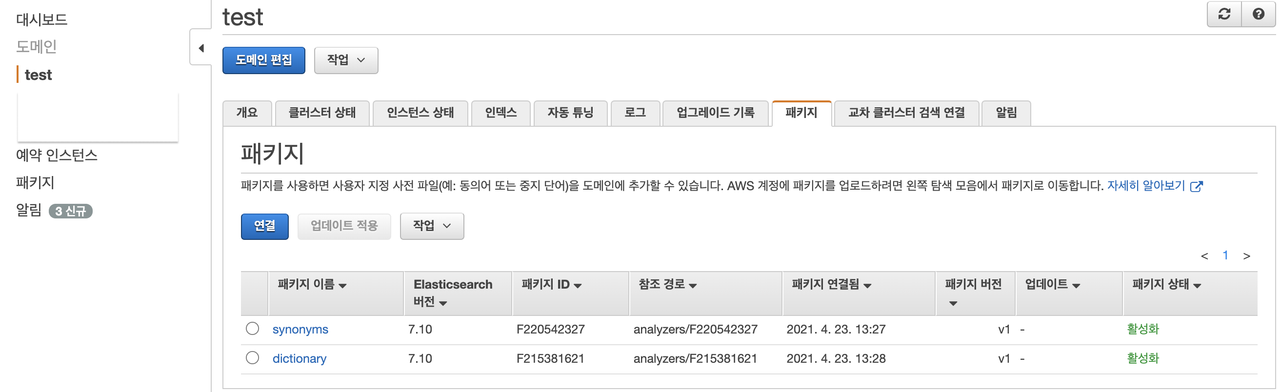 1) AWS Elasticsearch Service > 패키지 > [가져오기] 버튼 클릭