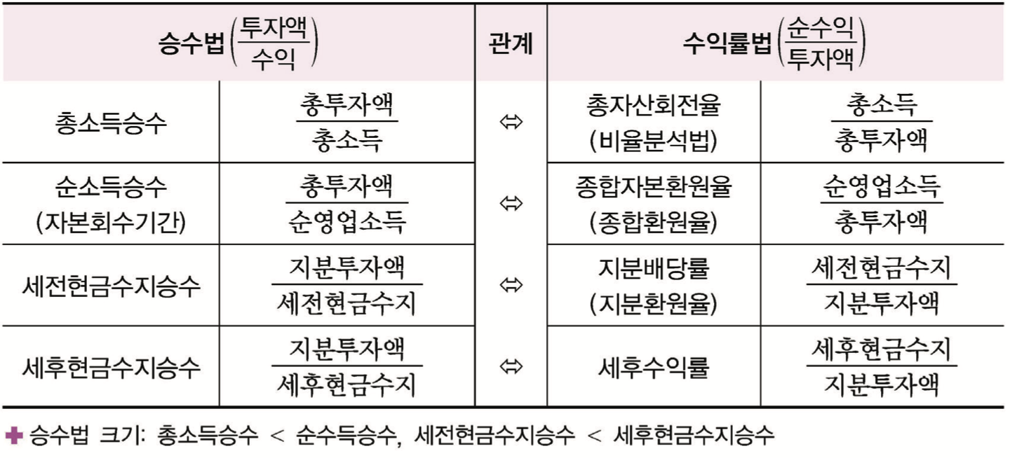 | 개념 | 현금유입의 현가 - 현금유출의 현가 | 현금유입의 현가 = 현금유출의 현가 | 현금유입의 현가 ÷ 현금유출의 현가 |