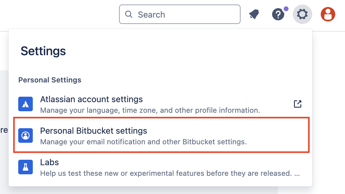 1) [Settings] > Personal Bitbucket settings 클릭