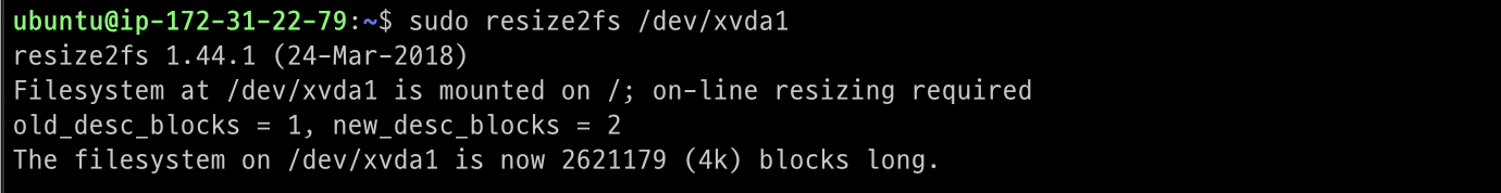 $ sudo growpart /dev/${추가된 볼륨} 1