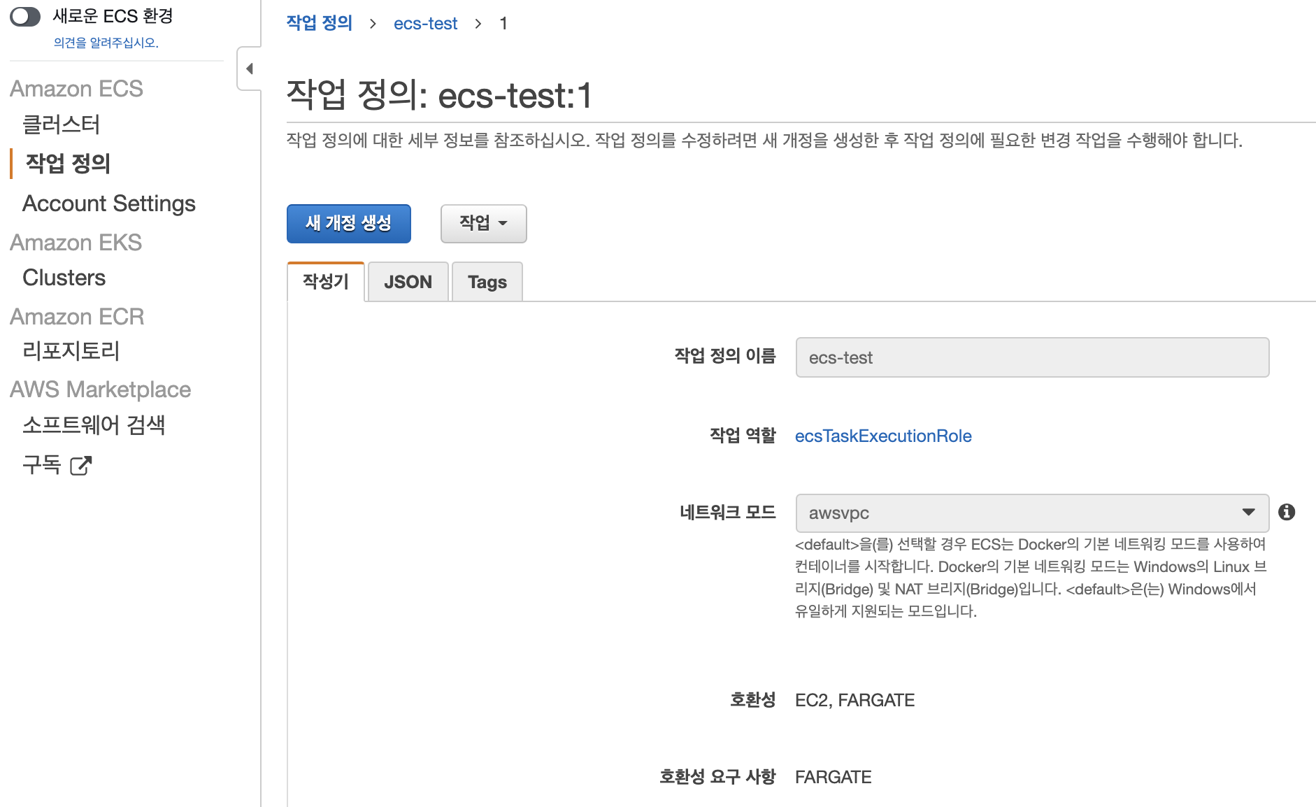 2. [작업 정의] > [새 작업 정의 생성] 버튼 클릭