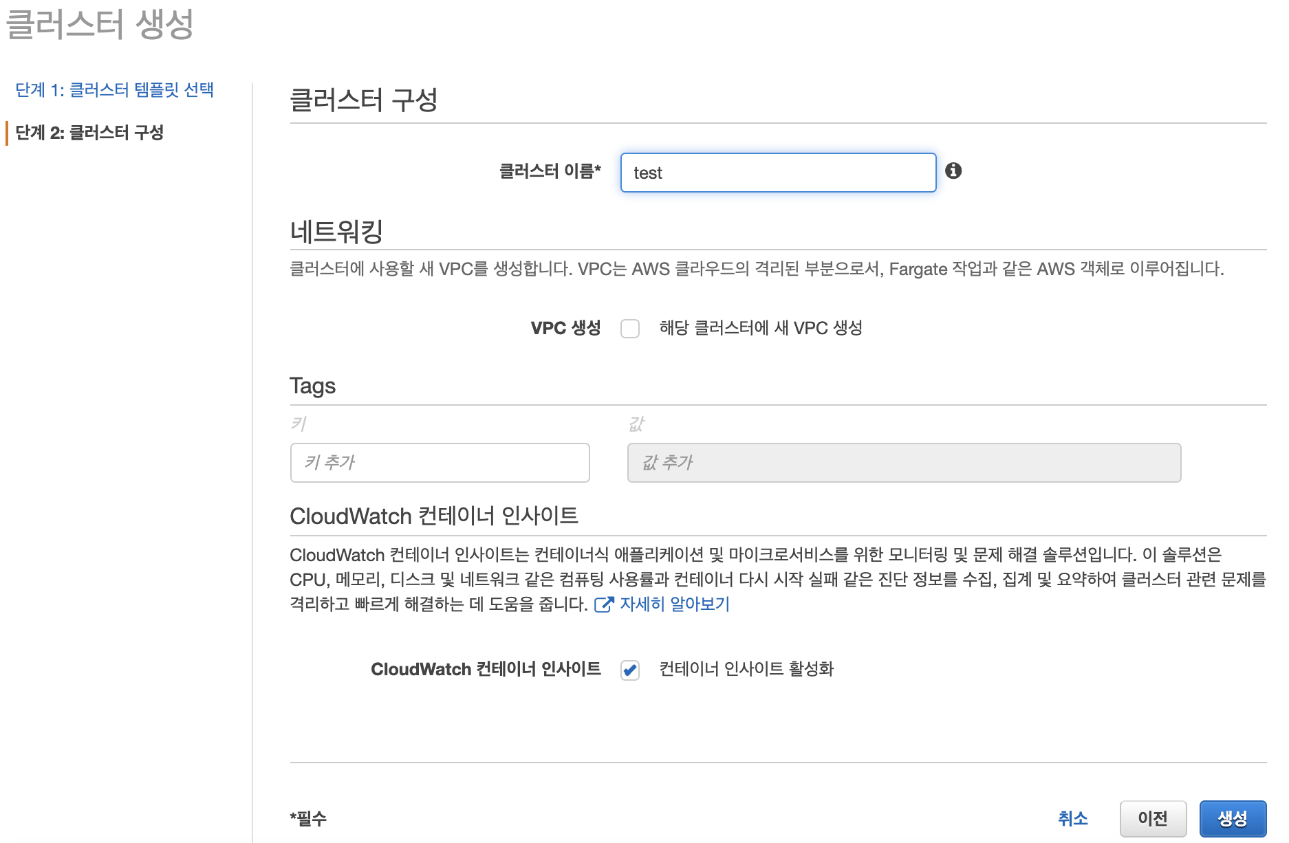1. [클러스터] > [클러스터 생성] 버튼 클릭