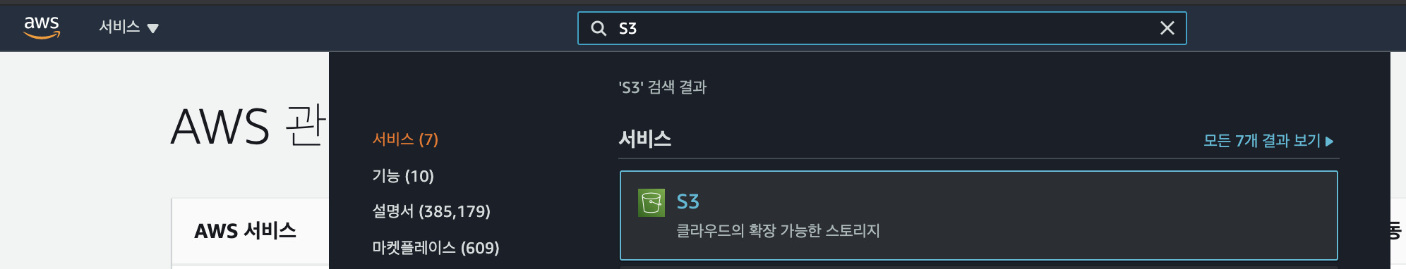 1. AWS Console 로그인 후 S3 에 들어간다.