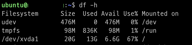 AWS EC2 인스턴스에 접속해서 디스크 사용량을 확인해 보니, 현재 67% 이다.