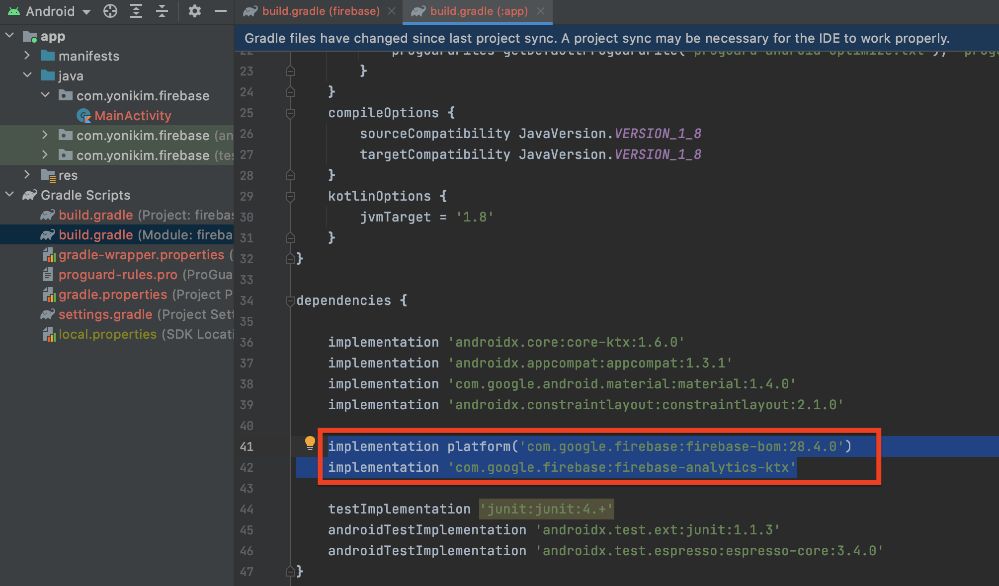 6-3. Firebase Consle > 앱 수준의 build.gradle