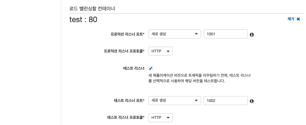4. 로드 밸런싱할 컨테이너 > [로드 밸런서에 추가] 버튼을 클릭하고 포트를 입력한다.